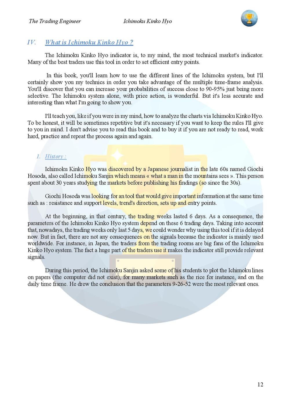 • The way I use the Ichimoku system alone (multiple timeframe strategy with the Price Action & the Japanese candlesticks reading) with 43 pages of examples, analysis & trades explained in detail,